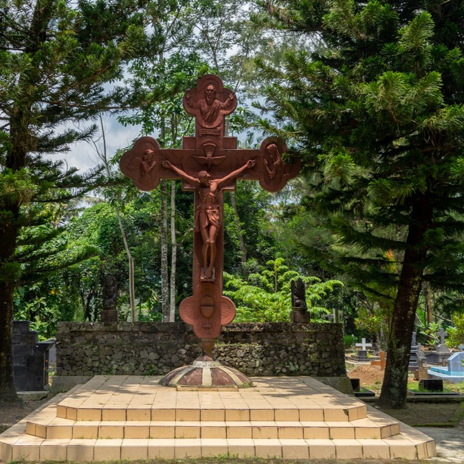 Salib Milenial yang akan Anda temukan saat masuk ke Kerkof Mendut. Salib ini berada di tengah-tengah Kerkof.